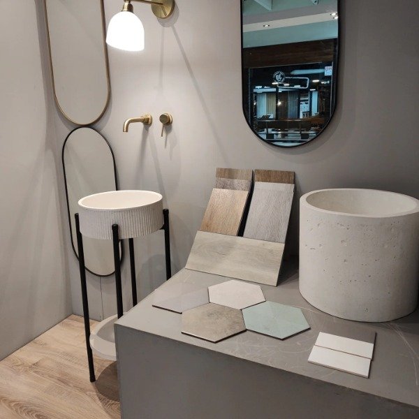 Bacha de hormigón con cuarzo, ideal para tener un baño distinto y moderno.